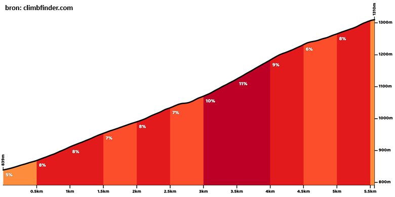 Er loopt een prachtig geasfalteerde weg naar het uitzichtpunt "La Cumbrecita" in Parque National de la Taburiente. Er kunnen hier maar een beperkt aantal auto's naar boven, omdat de parkeerplaats boven niet erg groot is. Elke auto moet derhalve geregistreerd worden om het aantal bezoekers boven beperkt te houden. Met de fiets kun je zo doorrijden. De weg is uitstekende kwaliteit en de natuur is beeldschoon. Aan het einde van de weg nog een paar fraaie haarspeldbochten als beloning. Boven is er inderdaad een kleine parkeerplaats. |