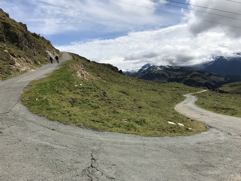 Bij de steilste passage ben ik foto's aan het maken en 2 aardige Oostenrijkers bieden aan om mij op de foto te zetten.