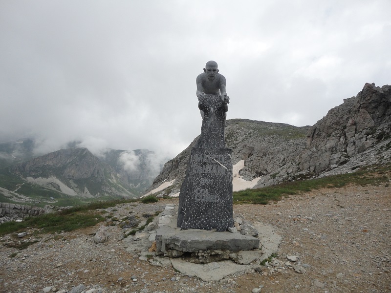 | Op de Colle della Fauniera staat een monument ter ere van de Italiaanse wielrenner Marco Pantani. |