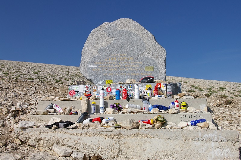 | Op de Mont Ventoux staat een monument ter ere van de Britse wielrenner Tommy Simpson. |