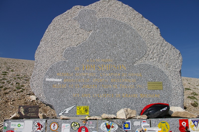 Een kilometer onder de top van de Mont Ventoux staat een gedenkteken ter nagedachtenis van de Engelsman Tommy Simpson. Simpson overleed op 13 juli 1967 door een hartstilstand op de flanken van de Mont Ventoux. Vermoedelijk is de doodsoorzaak een combinatie van hitte, uitputting, gebruik van amfetamine en een ongelofelijk doorzettingsvermogen. In 1969 werd het monument geplaatst. |