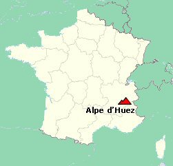 Alpe d'Huez is een wintersportplaats in de Franse Alpen vlakbij het plaatsje Bourg d'Oisans. De weg loopt via 21 bochten omhoog via de dorpen La Garde en Huez naar Alpe d'Huez. De meest beruchte en bekende klim naar Alpe d'Huez is de klim vanuit Bourg d'Oisans via de 21 haarspeldbochten. De bochten zijn genummerd van 21 tot 1 en hebben allemaal een naam. Alle winnaars van de etappes tijdens de Tour de France met aankomst op Alpe d'Huez, startend met Fausto Coppi in 1952, staan vermeld op een bord in de bochten. In 14 kilometer moet een dikke 1100 meter hoogteverschil worden overbrugd. Het gemiddelde stijgingspercentage is bijna 8 % en er zijn uitschieters van bijna 15 %. |