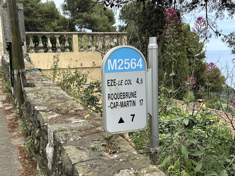 | 23 juni 2024 Onderaan besluiten Bert en Frank terug te gaan en ik ga met Daniël, Arend en Theodoor nog naar de Col d'Èze. Deze klim is een bekende uit de finale van Parijs-Nice en staat al een tijdje op mijn verlanglijstje. Op elke kilometer staat een groot bord met informatie over de klim en het is duidelijk dat de klim belangrijk is voor o.a. de Tour de France. De top is op 500 meter hoogte, hoewel de borden het er niet over eens zijn. We dalen de 9 kilometer af via zelfde weg en rijden dwars door Nice naar de kust. Daniël heeft nog wel 2 lekke banden, maar dat mag de pret van deze dag niet drukken. We rijden weer terug over het fietspad langs de kust en moeten nu nog omhoog naar ons huis. Dit is nog wel een dingetje, een kilometer 10%. |