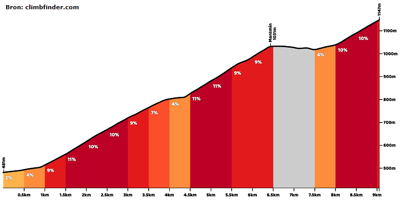 | Deze bergpas werd al in 1959 gepasseerd tijdens de Ronde van Frankrijk en kwam daarna pas 3 keer terug in het parcours. De laatste keer was in 2016 en onze Belgische vriend Thomas de Gendt kwam als eerste door. |