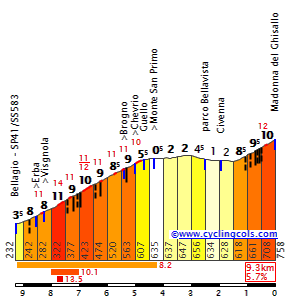 | De Madonna del Ghisallo is een bergpas in Italië met een hoogte van 758 meter. |