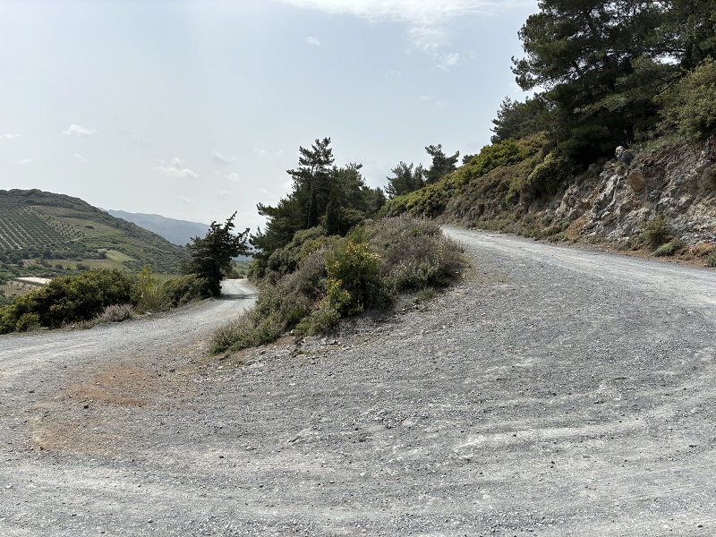 | 17 april 2024 We gaan vandaag een korte rit doen met minder hoogtemeters. De benen doen pijn van 2 zware dagen. Frank gaat ook weer mee en maakt een scherpe indruk. We fietsen vanuit ons huisje naar "Mount Juktas", ook wel Giouchtas genoemd, een kapel op 811 meter hoogte. Vanaf de zuidkust is de berg al te zien met daarop de kapel en een aantal zendmasten. Om de berg te bereiken moet je om de berg heen, omdat de opgang van het zuiden is. We draaien de weg in en deze blijkt onverhard. Dit was niet goed te zien op Google Earth. We besluiten gewoon omhoog te rijden en 4 kilometer steen, gruis en grind is niet eenvoudig te doen. Het is steeds zoeken naar het juiste spoor, maar met onze skills is dat geen probleem ;) Boven staat een fraaie witte kapel en ik besluit ook binnen even te kijken. Veel fresco's en iconen vullen de kleine ruimte. Het uitzicht boven is overigens prachtig. Nu volgt nog een lastige afdaling, maar ook die loopt prima. Beneden nuttigen we een pasta in het dorp en fietsen weer terug. |