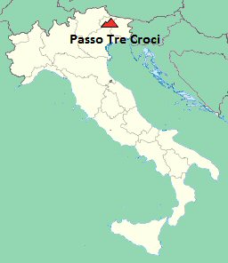 | De Passo Tre Croci is een berg in Italiaanse Dolomieten met een hoogte van 1809 meter. |