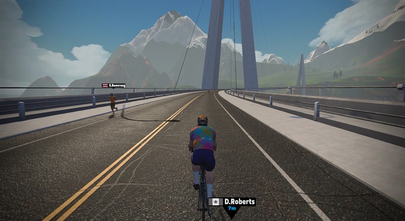 | De beklimming van beide kanten zijn prima te doen vanwege de wat mildere stijgingspercentages. Het venijn zit puur in de extra klim naar de Radio Tower, waar de 17% wordt aangetikt. Gelukkig is het maar 1 kilometer. Het landschap waar je doorheen fietst is ontzettend mooi gemaakt. Bruggen, dorpjes, lawinetunnel, sneeuw en luchtballonen maken de rit afwisselend en zeer vermakelijk. Ook fijn is dat wordt aangegeven met borden hoe hoog je zit. De borden 100, 200, 300, 373, 400 en 500 komen voorbij. |
