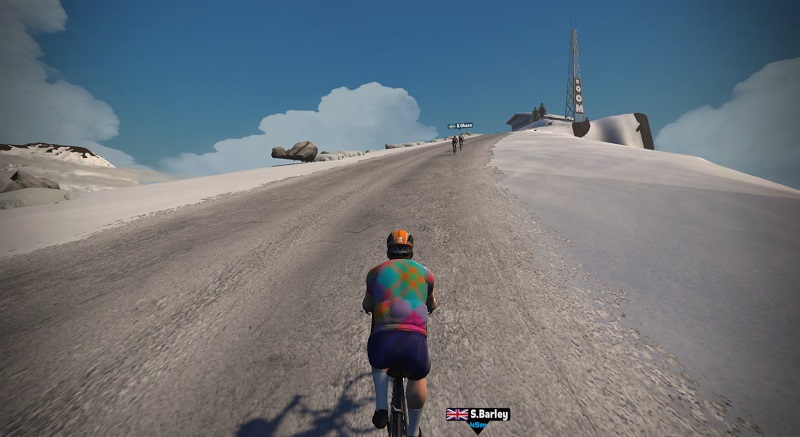 | Mooiste klim in Zwift, mooi toetje met klim naar Radio Tower, geit op de top. |